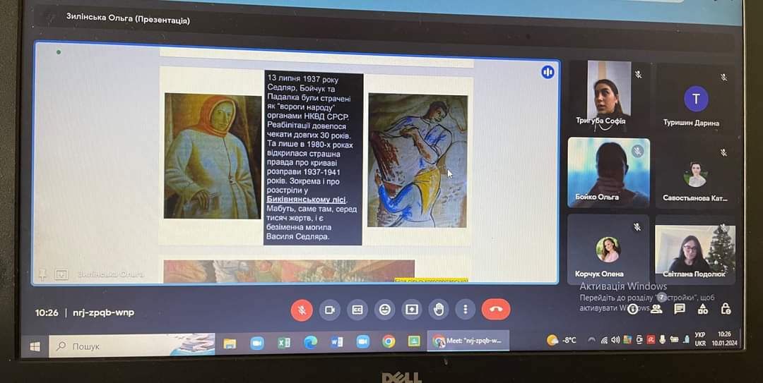11 січня у дистанційному форматі відбулося практичне заняття зі студентами заочної форми навчання 21-ПОс, які обрали для вивчення курс «Україна в обличчях: література, культура, мистецтво, спорт» (викладач – Світлана Подолюк).
