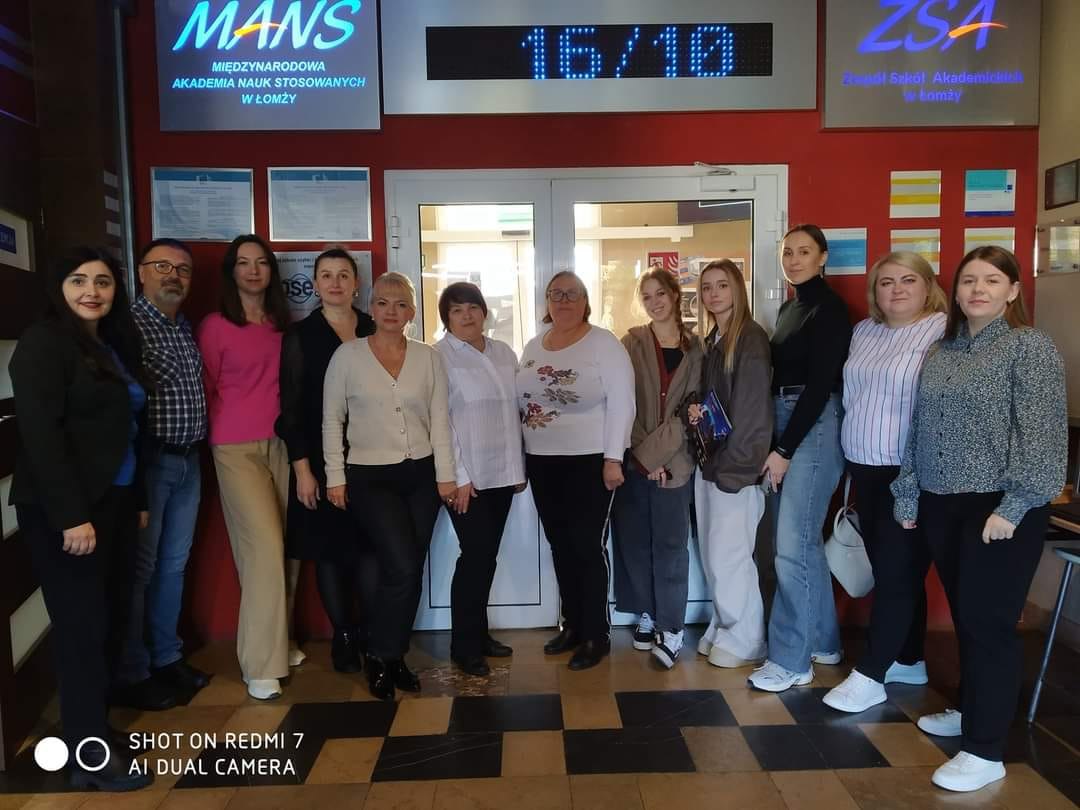 Стажування на тему «Формування професійно-педагогічної та соціально-психологічної компетентностей з розвитком фахової майстерності учасників освітнього процесу у сфері дошкільної, початкової, загальної середньої та вищої освіти у контексті інтеграції в європейський освітній простір» відбуватиметься в очному та онлайн форматах. Програма реалізується на базі Міжнародної Академії Прикладних Наук у Ломжі та передбачає поєднання лекцій, практичних занять, дискусій і воркшопів.