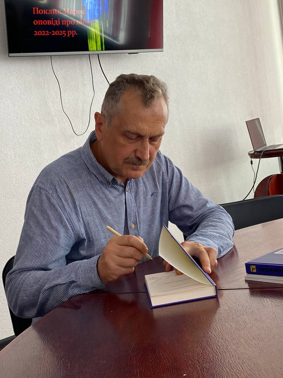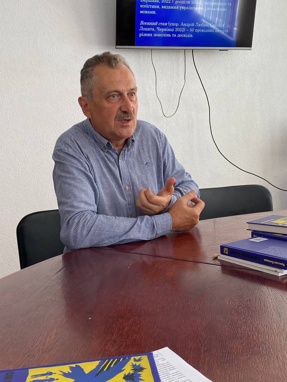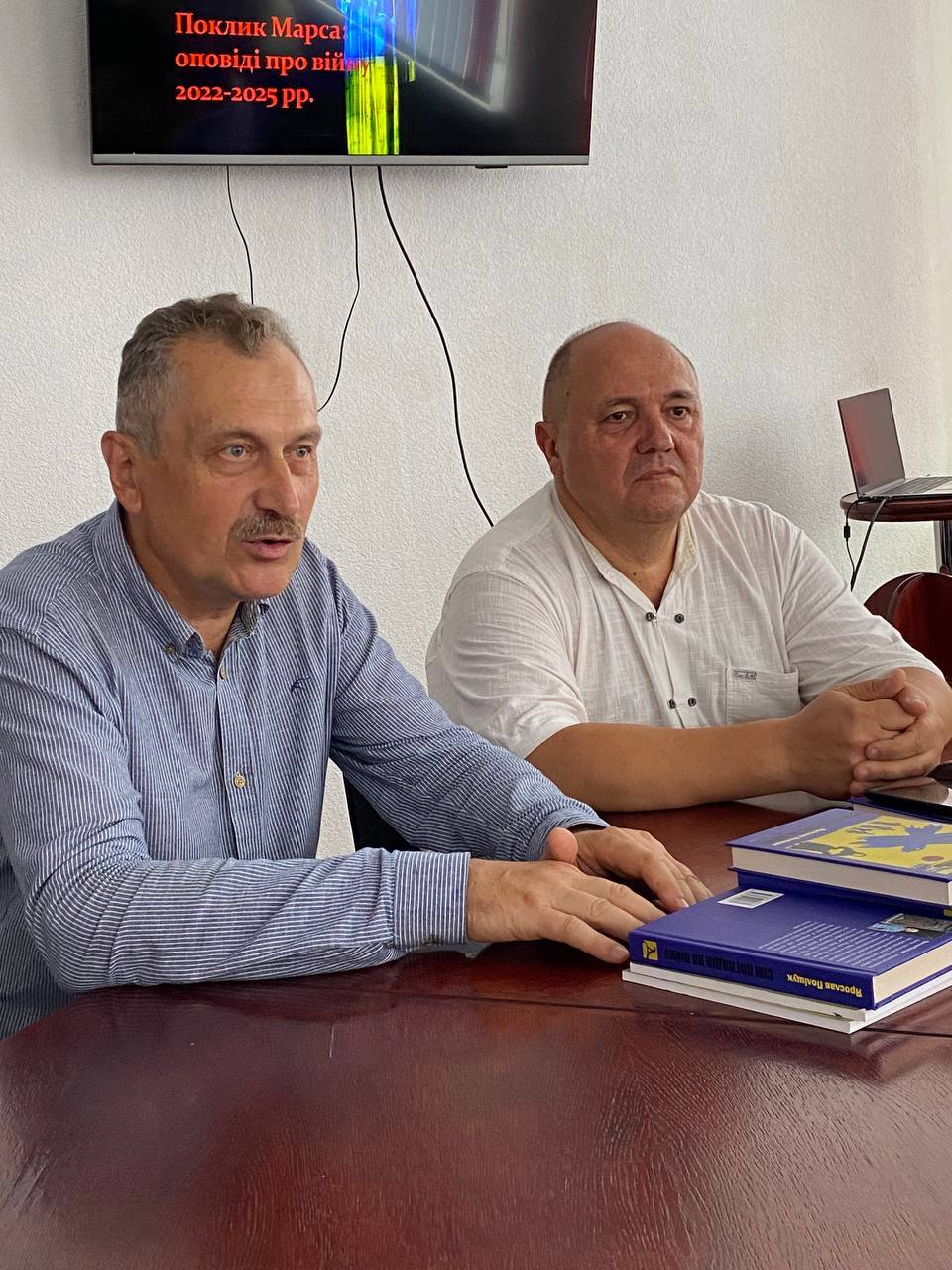 Ярослав Поліщук презентував учасникам зустрічі авторську книгу “Сім поглядів на війну”. Розглядаючи й оцінюючи широкий пласт вітчизняної мілітарної літератури за три роки повномасштабної війни, пан професор окреслив основні опертя, які дали життя цій темі в рефлексіях сучасного письменства, зокрема: безпосередній фронтовий досвід, випробування окупацією, вигнанство й вимушена еміграція, досвід тилового побуту і волонтерство, досвід виживання в полоні, утрата близьких.