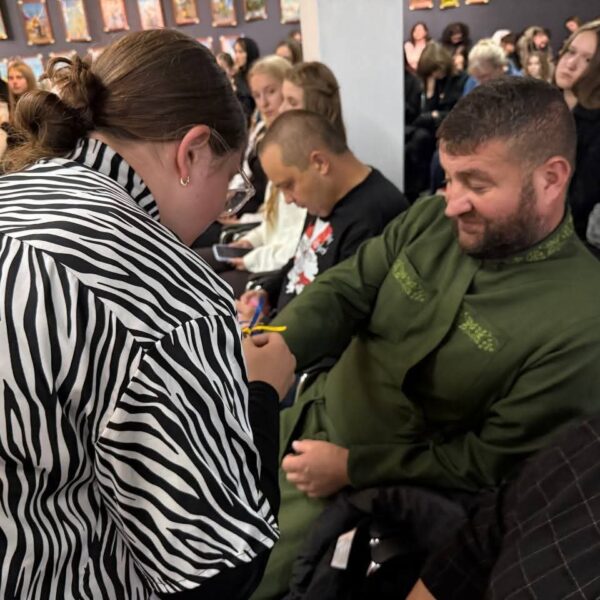 На згадку про зустріч та з побажаннями перемоги студенти подарували військовим обереги.