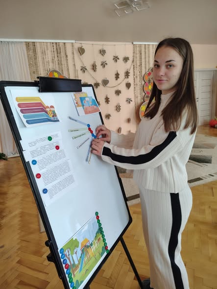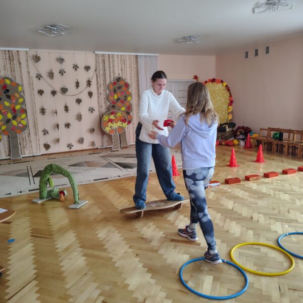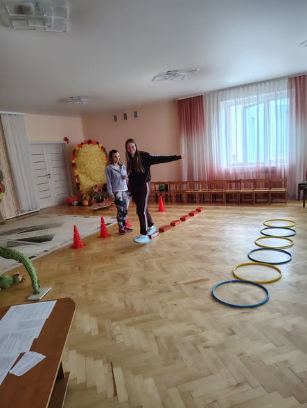 Інструктором з фізкультури Тетяною Купрінець студентам було продемонстровано, як адаптувати фізичні вправи та рухливі ігри для дітей з різними нозологіями. Розглянуто використання ігрових матеріалів, які стимулюють рухову активність та розвивають координацію, баланс та загальну моторику. Також студентів познайомили із середовищем: спортивною залою, ресурсною кімнатою. Було підкреслено роль команди психолого-педагогічного супроводу, яка включає вихователів, корекційних педагогів, асистента вихователя та інших фахівців. Обговорювалася важливість спільної роботи та обміну досвідом для розробки та реалізації індивідуального плану розвитку для кожної дитини з ООП.