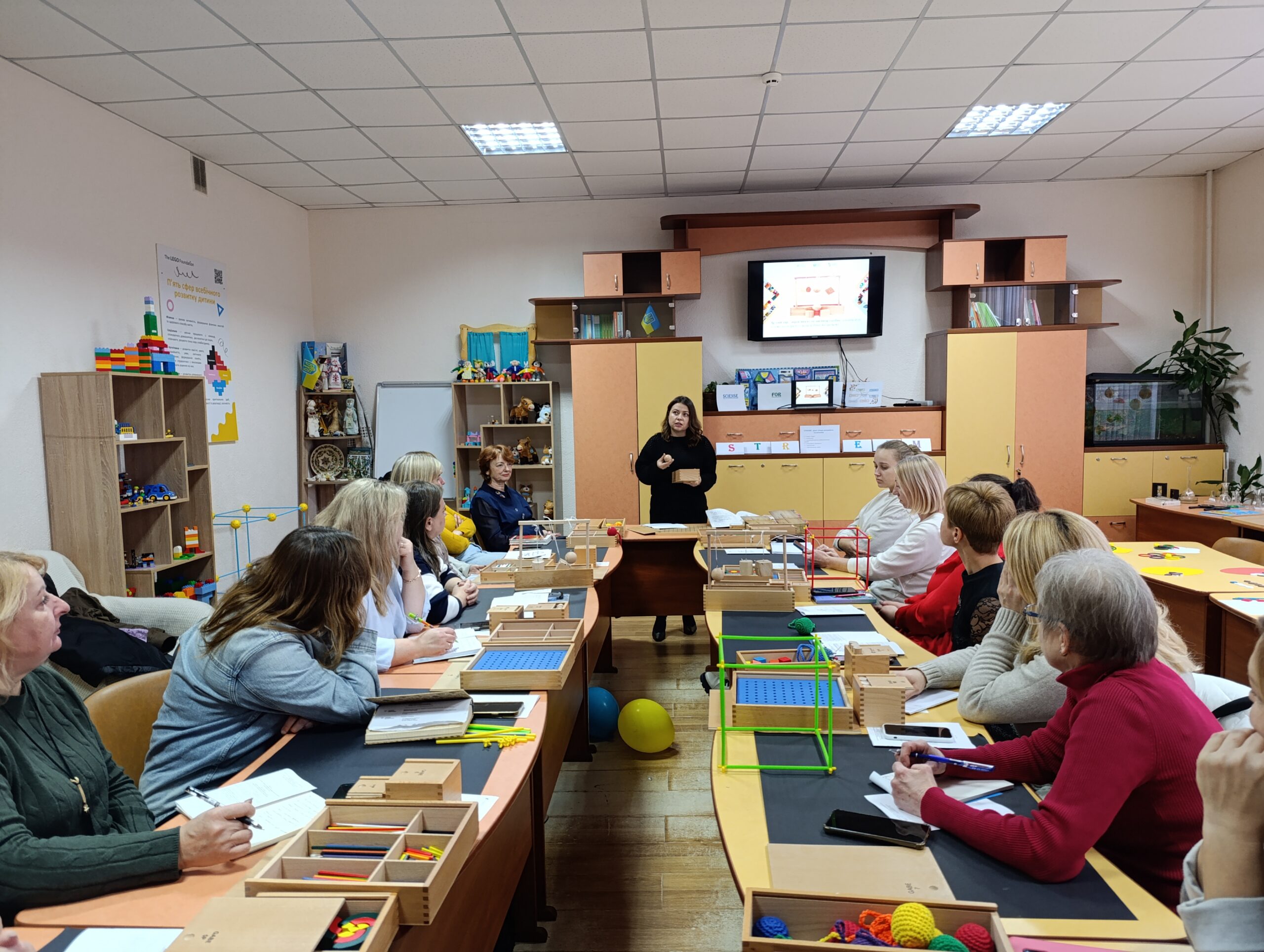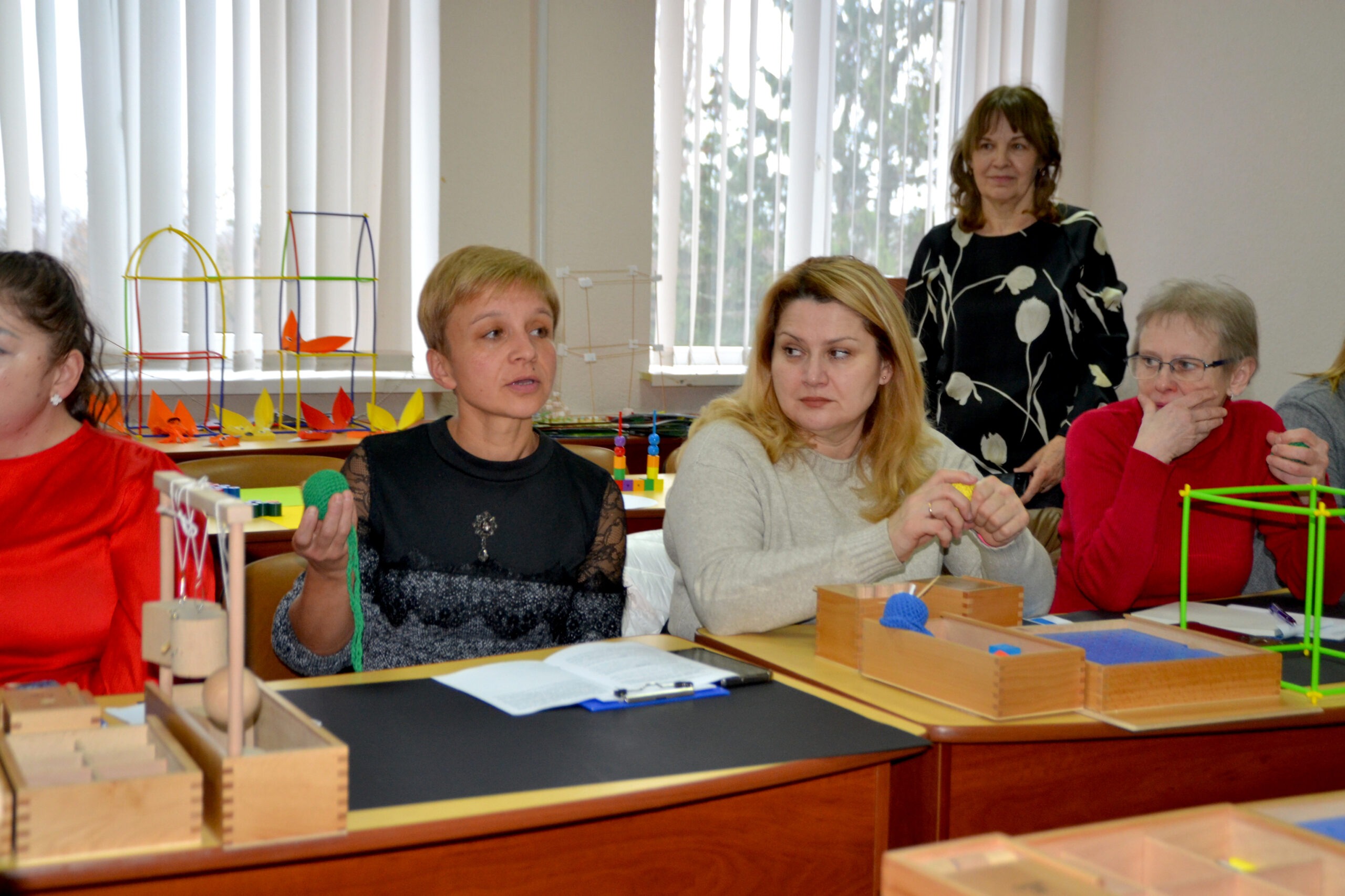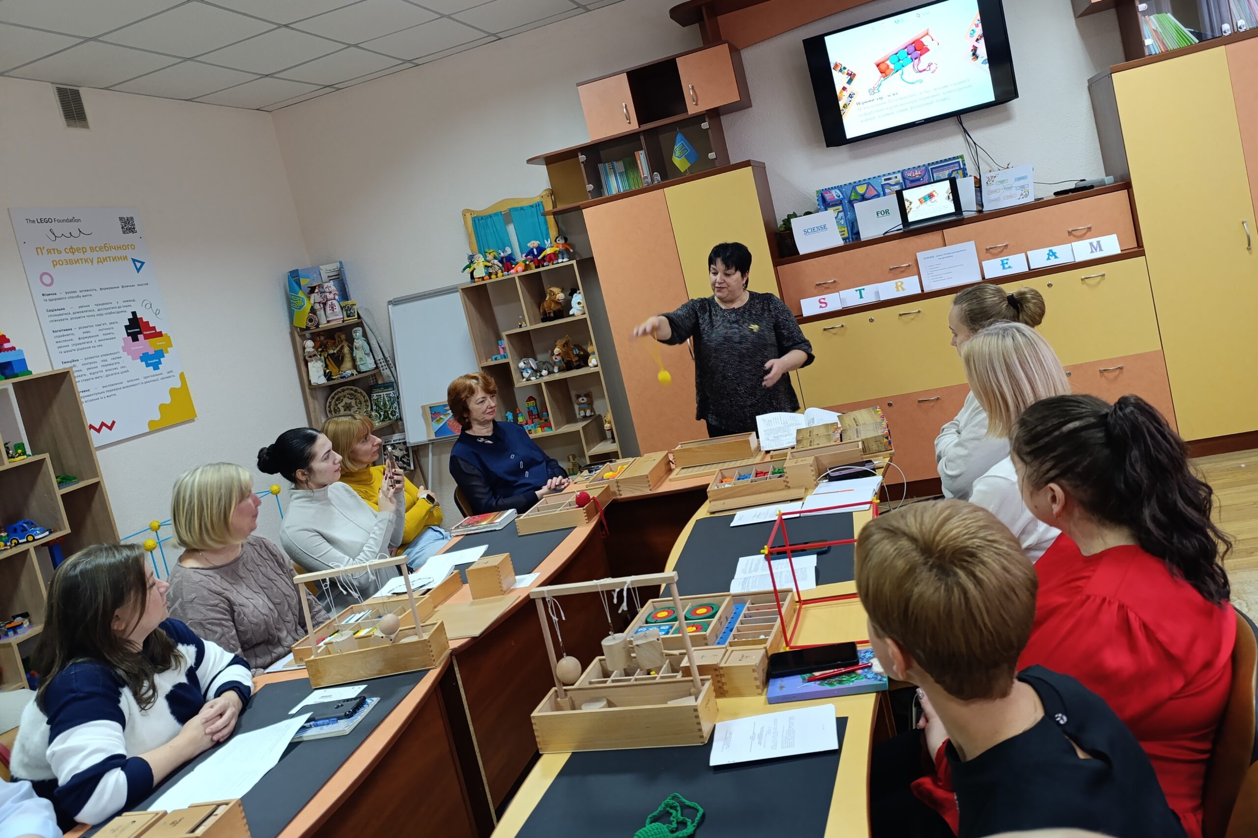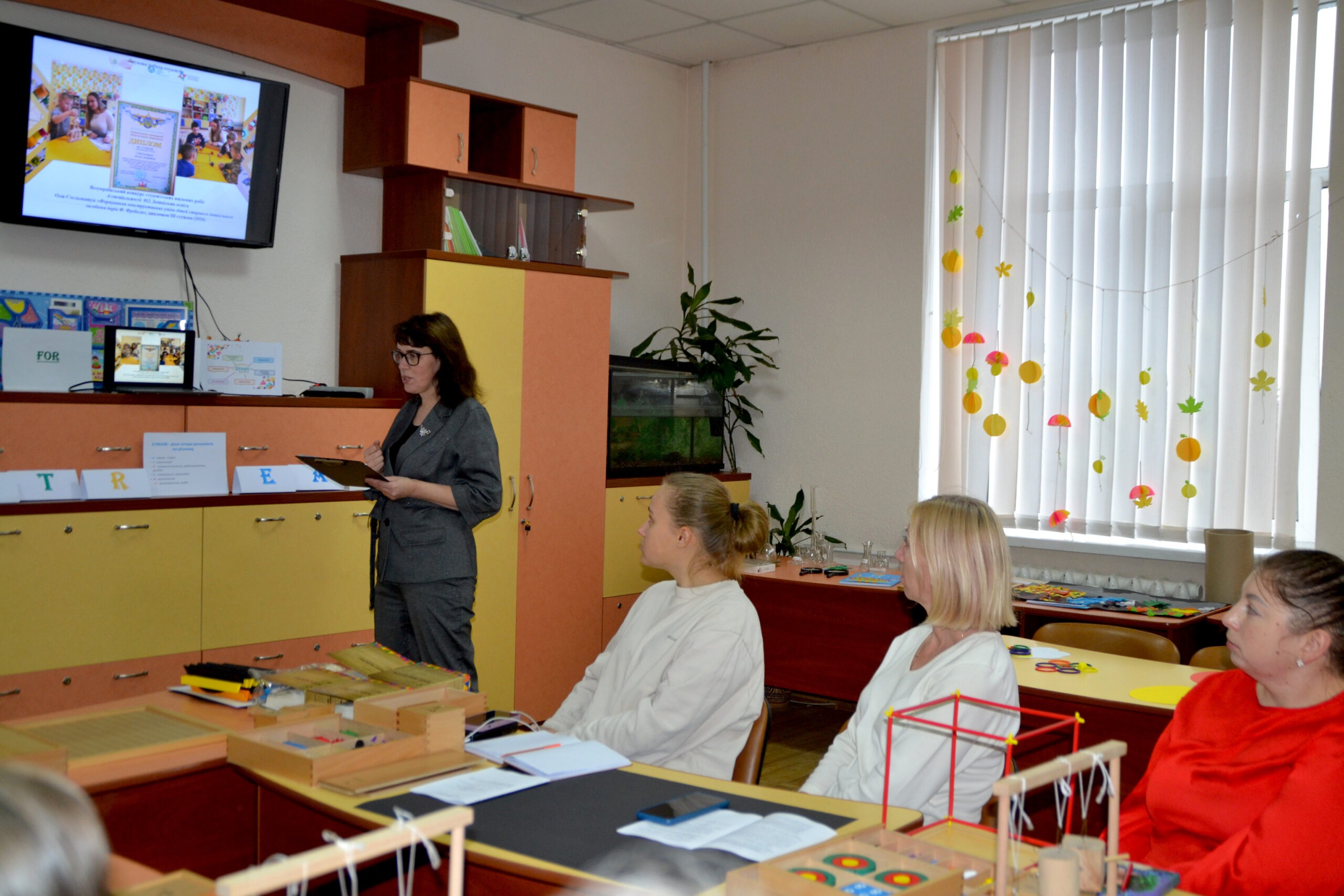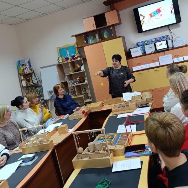 Вихователь-методист Наталія Яцук (ЗДО №2) презентувала новаторські практики, авторські посібники, провела майстерки з використанням дарів Фребеля. Учасники семінару опановували практичні навички роботи з дидактичними матеріалами, переконалися в їх значущості, унікальності та універсальності.