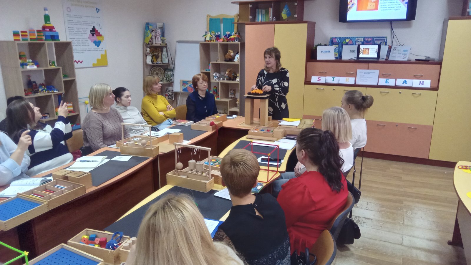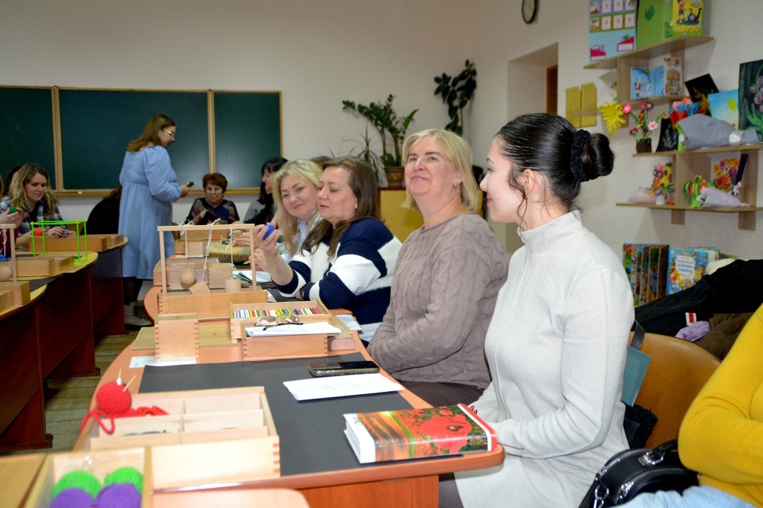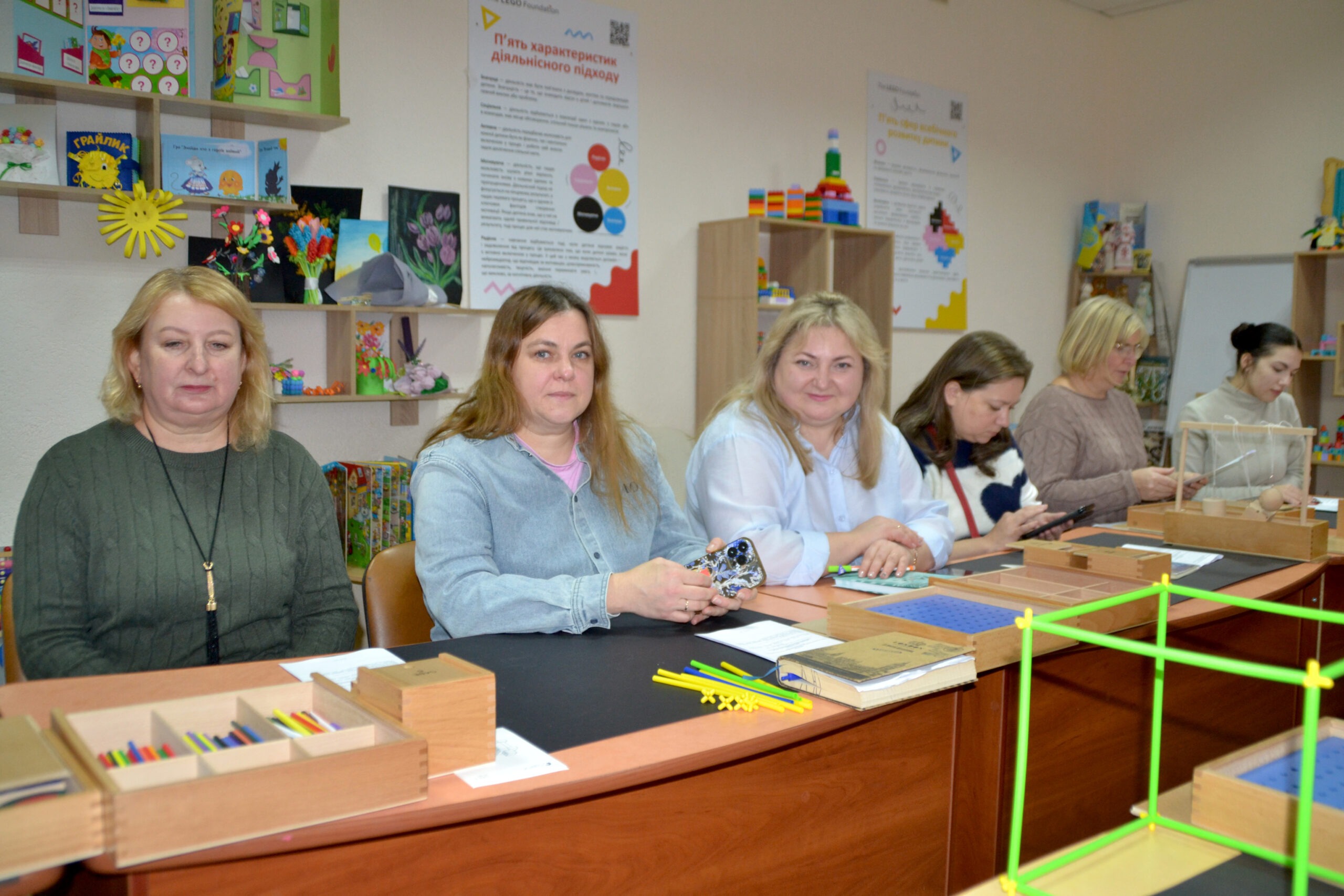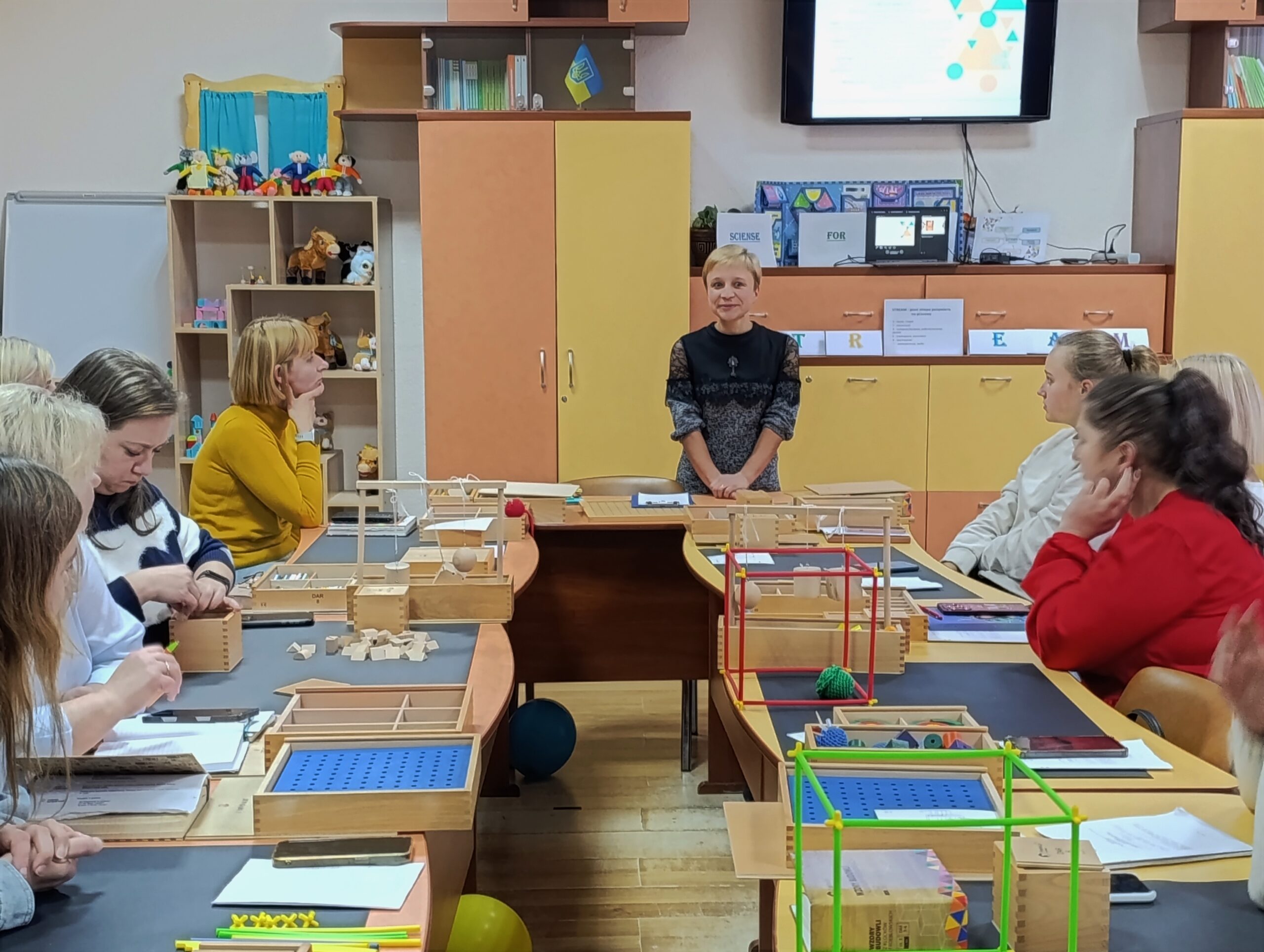 Вихователь-методист Наталія Яцук (ЗДО №2) презентувала новаторські практики, авторські посібники, провела майстерки з використанням дарів Фребеля. Учасники семінару опановували практичні навички роботи з дидактичними матеріалами, переконалися в їх значущості, унікальності та універсальності.