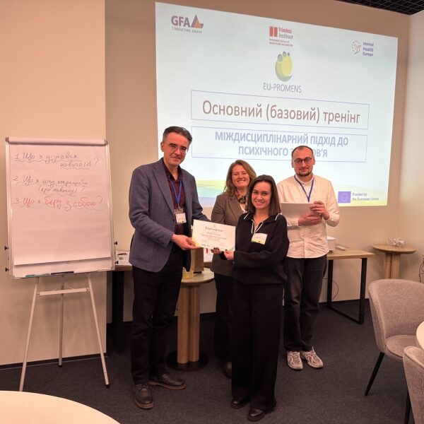 За підсумками навчання учасники отримали сертифікати міжнародного зразка, що засвідчують успішне проходження програми та підтверджують їхню професійну кваліфікацію в межах європейської ініціативи розвитку сфери психічного здоров’я.
