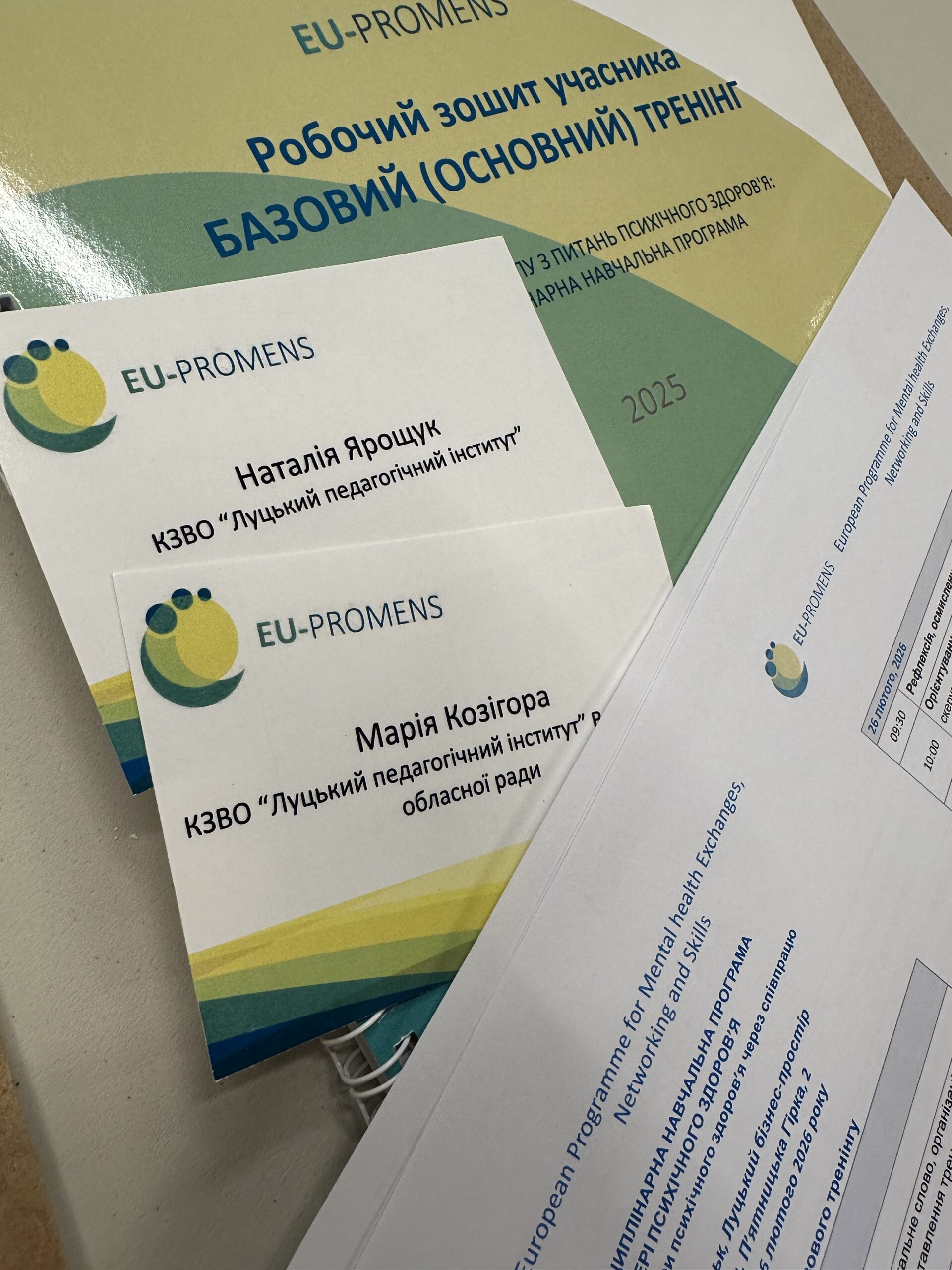 Упродовж 24–25 лютого 2026 року викладачі інституту Марія Козігора та Наталія Ярощук взяли участь у міжнародній навчальній програмі в межах ініціативи EU-PROMENS (European Programme for Mental Health Exchanges, Networking and Skills Development).