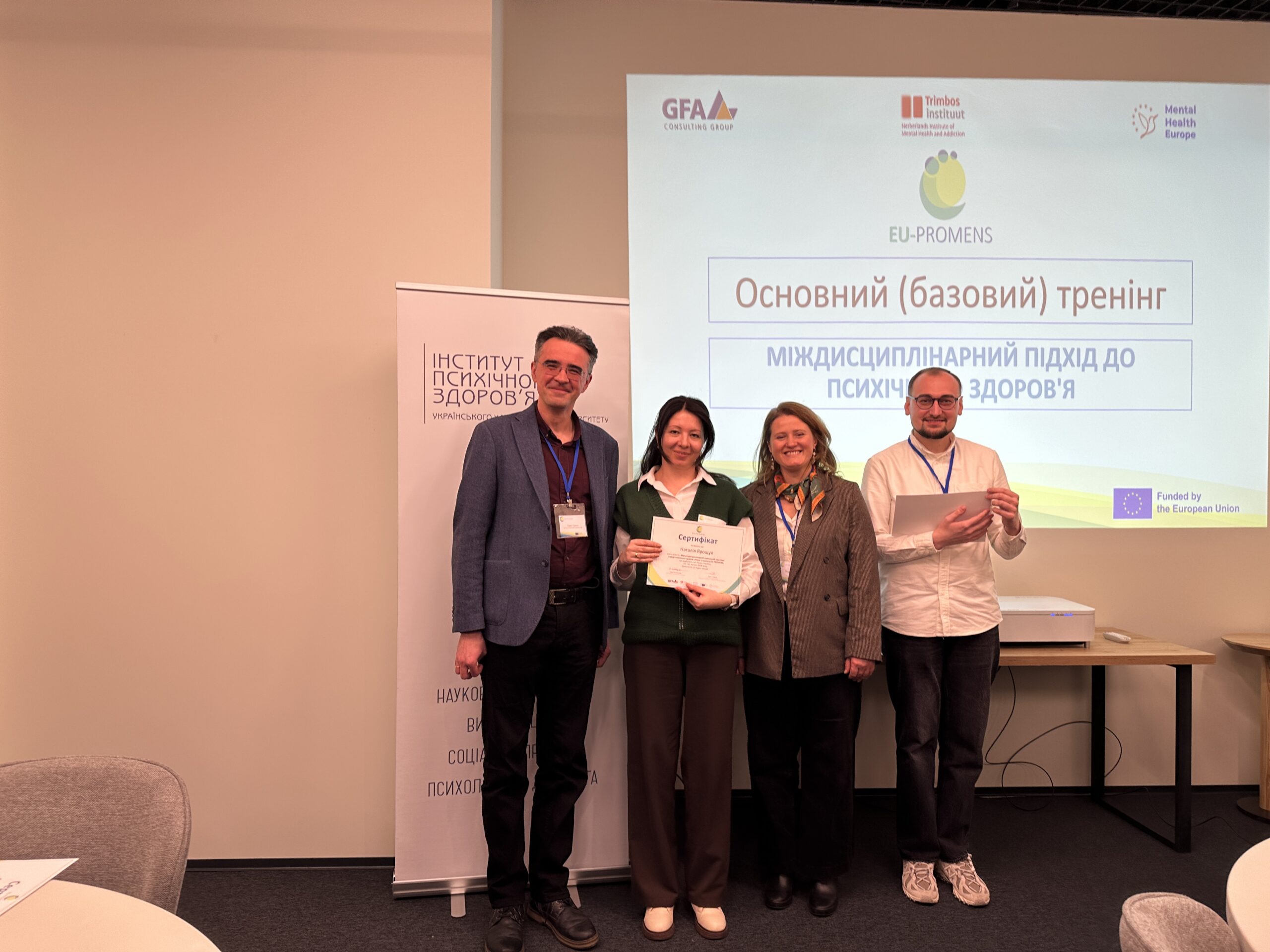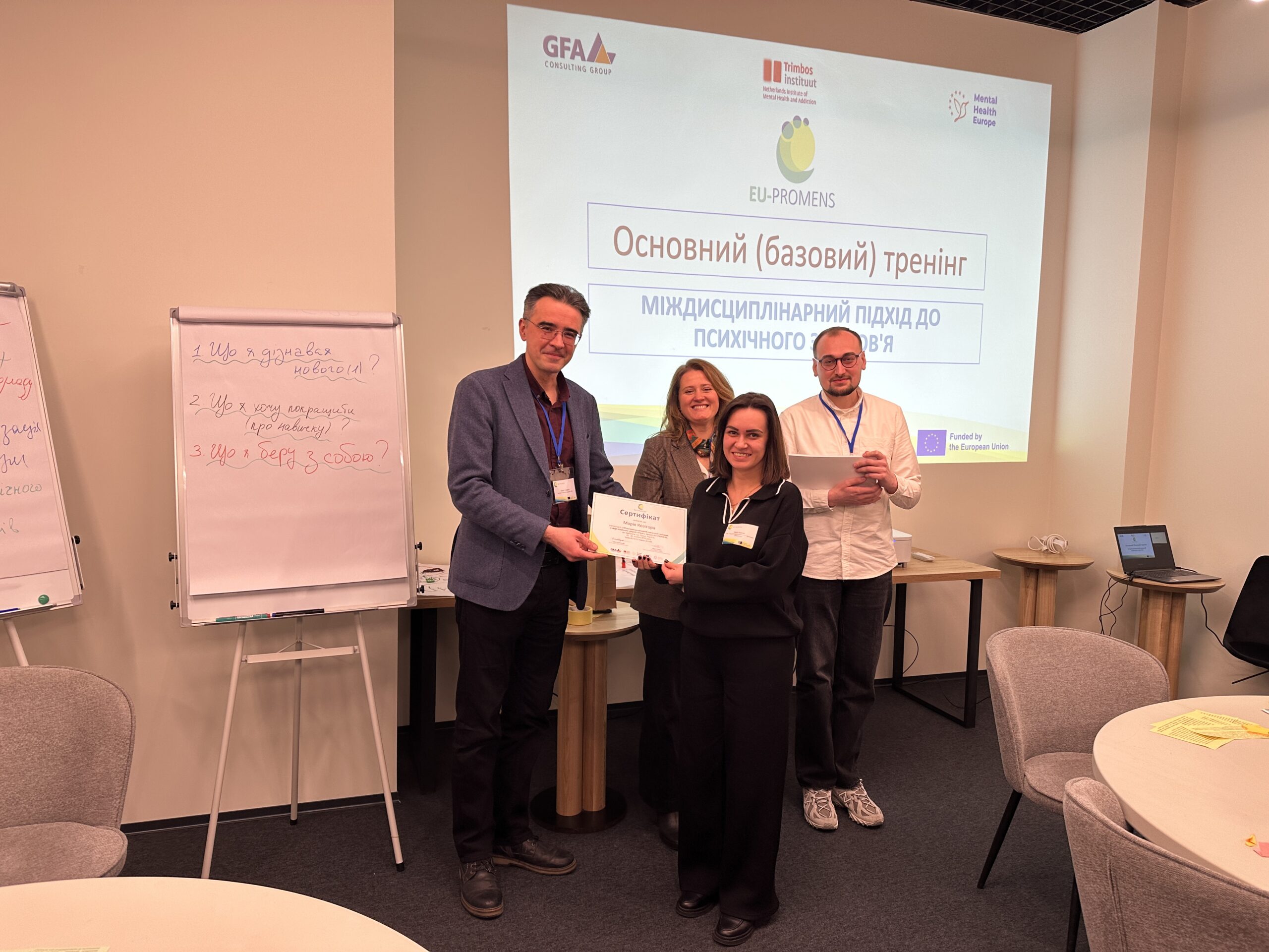 За підсумками навчання учасники отримали сертифікати міжнародного зразка, що засвідчують успішне проходження програми та підтверджують їхню професійну кваліфікацію в межах європейської ініціативи розвитку сфери психічного здоров’я.
