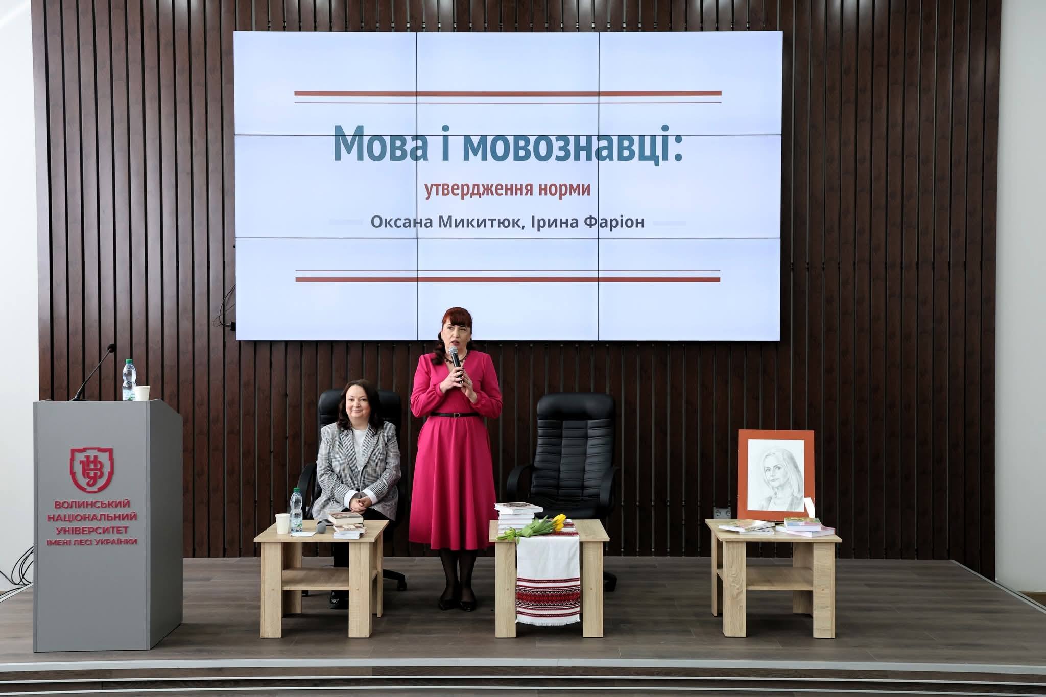 Видання представила співавторка проєкту — відома мовознавиця, доктор філологічних наук, викладачка Національного університету «Львівська політехніка» Оксана Микитюк. Вона детально висвітлила передумови та історію творення книги, наголосивши на важливості утвердження мовних норм у сучасному суспільстві. Особливої глибини заходу додала чуттєва розповідь доньки авторки, Софії Особи, яка поділилася маловідомими фактами про життєвий шлях Ірини Фаріон та ті грані її особистості, що часто залишалися поза увагою широкого загалу.