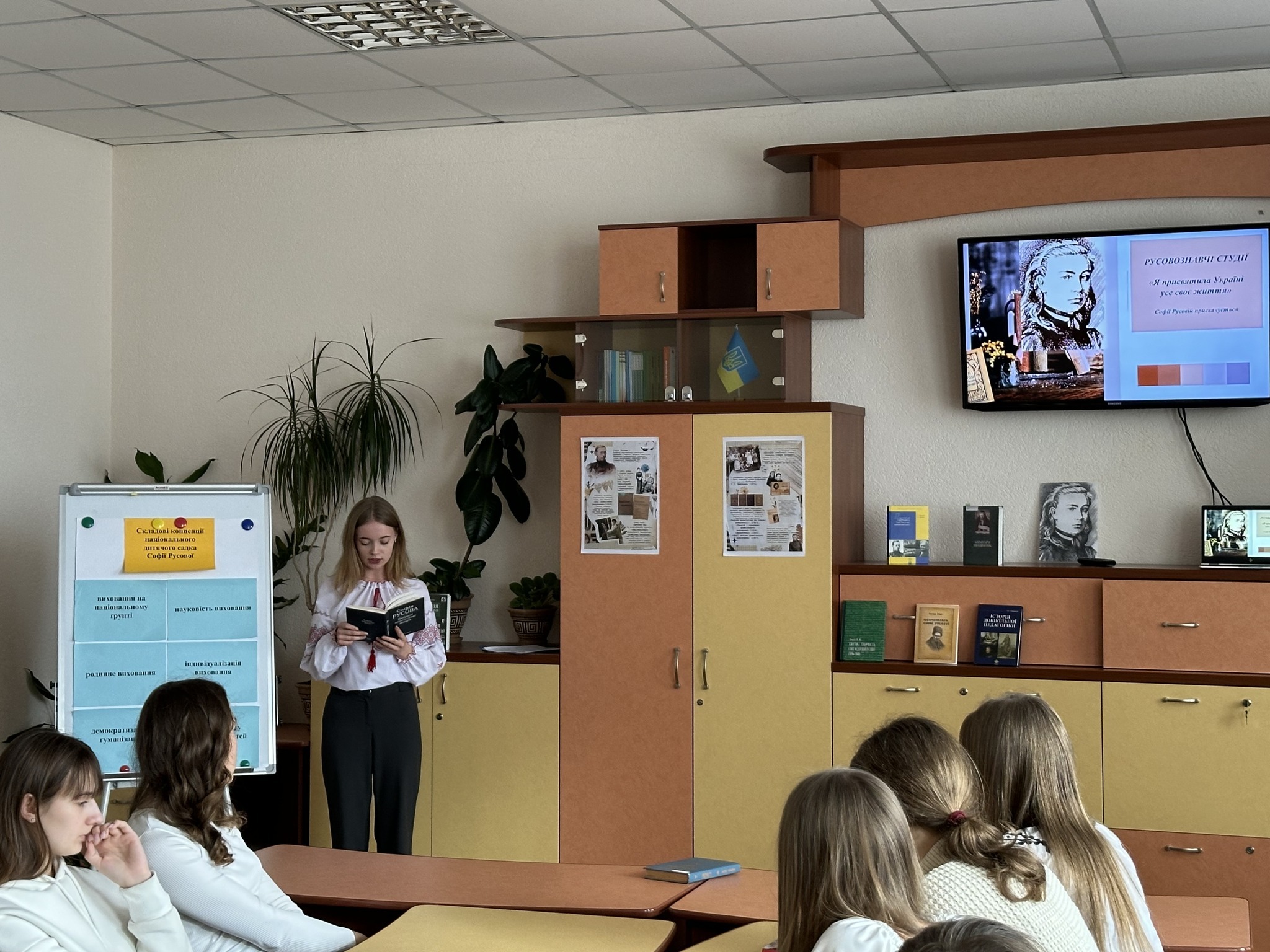 Здобувачі освіти мали можливість познайомитися з працями педагога, у яких розкрито проблему духовно–морального виховання дітей, джерела розвитку мовленнєвої особистості в дошкільному дитинстві та акцентували увагу на можливості використання ідей Софії Русової в системі національно–патріотичного виховання у сучасному закладі дошкільної освіти.