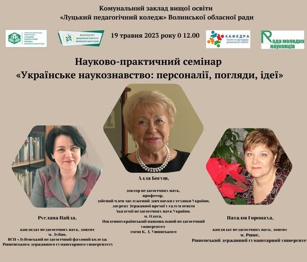 В рамках Днів науки, з метою популяризації досягнень українських вчених-науковців, дослідників, педагогів минулого та сучасності, їх впливу на розвиток системи освіти, науки та культури Волинського краю, кафедрою теорії та методики дошкільної освіти та цикловою комісією шкільної, дошкільної педагогіки, психології та методик, організовано семінар-практикум «Українське наукознавство: персоналії, погляди, ідеї».